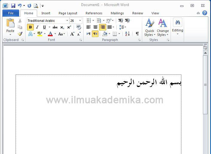 Disini saya akan mencontohkan cara membuat tulisan bismillah di microsoft word.